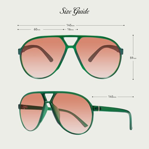 • Classic retro aviator design: The sunglasses feature oversized frames and metal decorations on the temples to make them more trendy, fashion and modern. Offering a variety of colors to meet different scenarios and wearing needs, showing your unique charm