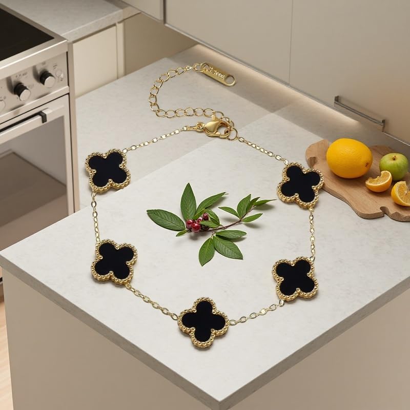 Clover bracelet, elegant design, handmade jewelry for women, adjustable clover charm bracelet, fashion jewelry (black) 5
