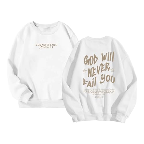 Christian Sweatshirt for Girls God will Never Fail You Grahpic Print Hoodies Long Sleeve Pullover Oversized Shirt 3-14T 4