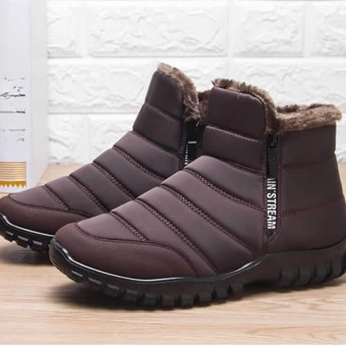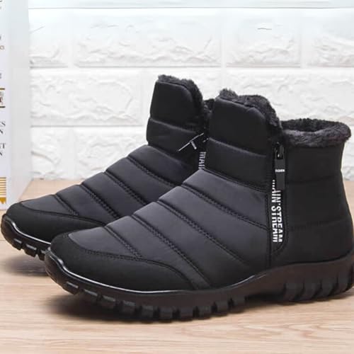 OrthoFit Winter Ankle Boots Mens Waterproof Snow Boots Fur Lined Warm Ankle Boots Zipper Closure Slip on Comfortable Walking Shoes 5