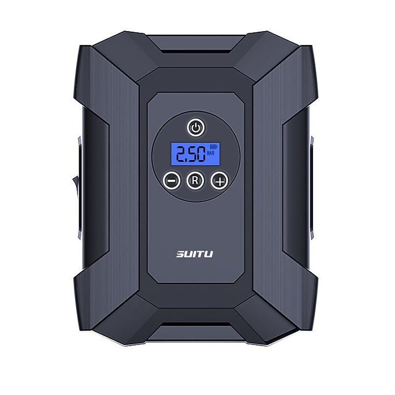- PROGRAMMABLE INFLATION: With the "R" button, you can easily set your desired pressure unit. The "+" and "-" buttons allow you to adjust the desired pressure level. This portable tire inflator is equipped with a smart chipset that automatically shuts off when the preset value is reached, ensuring tire pressure accuracy and preventing over-inflation or low tire pressure.