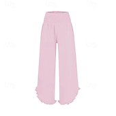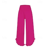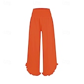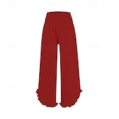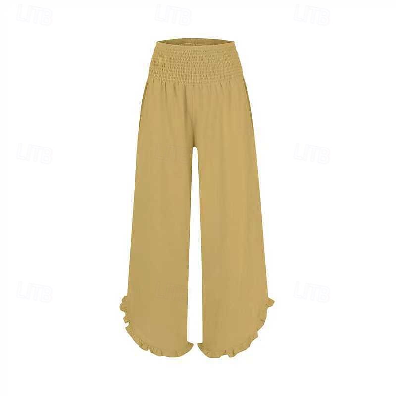 More information about Women's Cotton Linen Pants Wide Leg Slacks Streetwear Casual Full Length Natural Plain Elastic Waist Comfortable Street Holiday Daily Wear claret Orange red Spring Grass Green Yellow Fall Regular Fit