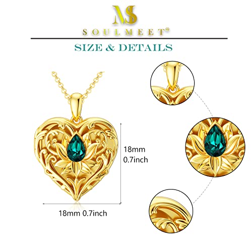 More information about SOULMEET 10K 14K 18K Solid Gold Personalized Sunflower/Starburst/Cross/Rose/Lotus/Butterfly/Turtle/Celtic/Bee Heart Locket Necklace That Holds Picture Gift Choice