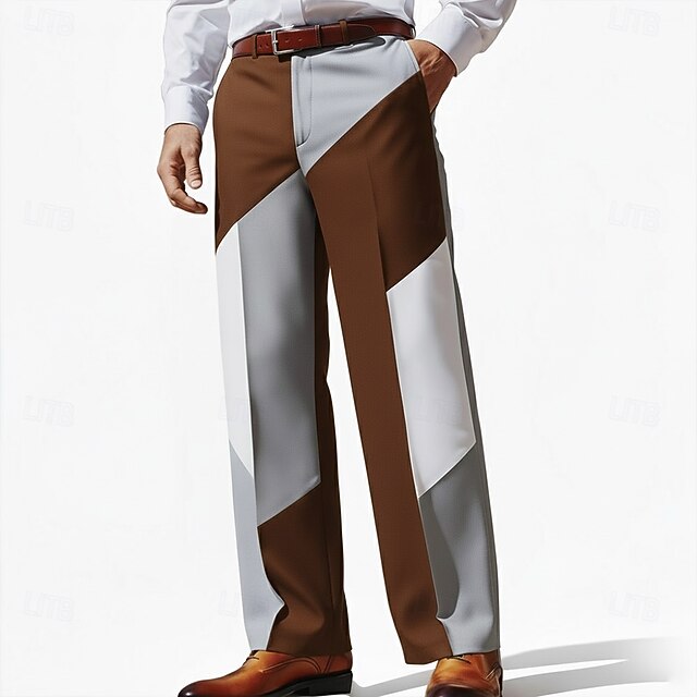 Men's Geometric Pattern Abstract Color-block Trousers Dress Pants Suit Pants Mid Waist Business Casual Formal Outdoor Holiday Relaxed Fit Flat Front Dress Pants with Side Pockets Spring Fall 3D Print 3
