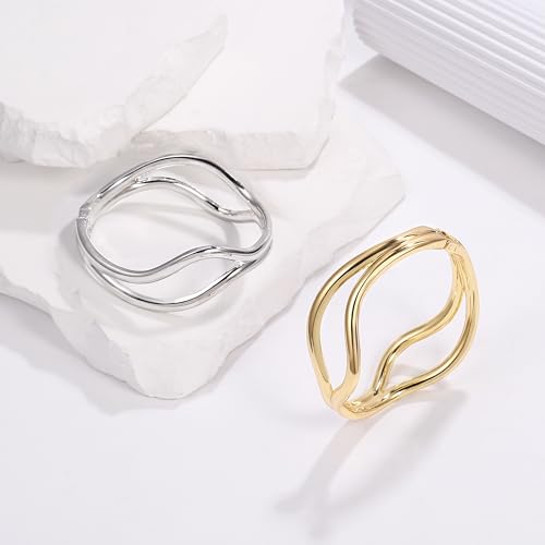• Bangle Bracelets for Women:This gold thick bangle bracelet is teardrop design,hinge design makes it easy to put on and take off,and perfect fit for your wrists,and chunky bracelet that can wear this bracelet on any occasion, it is simple and delicate and can be matched with any clothes.It is more textured with a sweater.