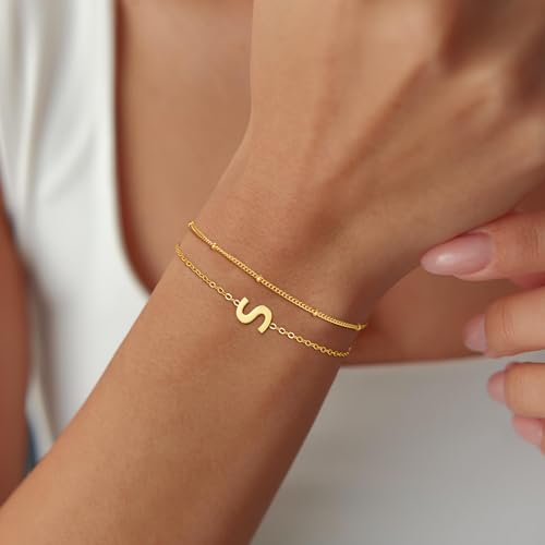 Gold Initial Bracelets for Woemn Girls - 18K Gold Plated Layered Initial Letter Bracelets Teen Girls Gifts for 5 6 7 8 9 10 Year Old Girl Birthday Gifts Gold Bracelet for Women 5