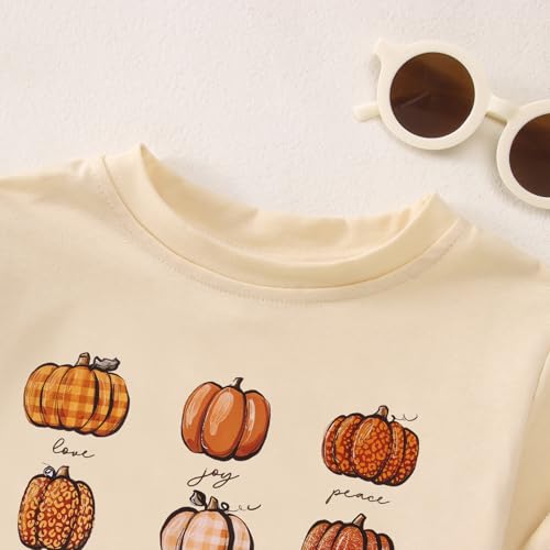 Toddler Girls Halloween Thanksgiving Shirt Cute Pumpkin Tshirt Love Joy Peace Letter Tops Spooky Season Fall Outfit 4