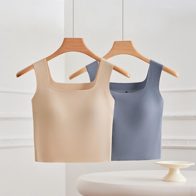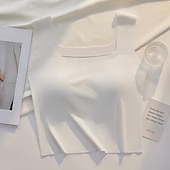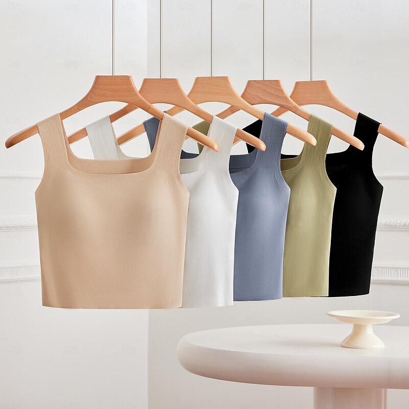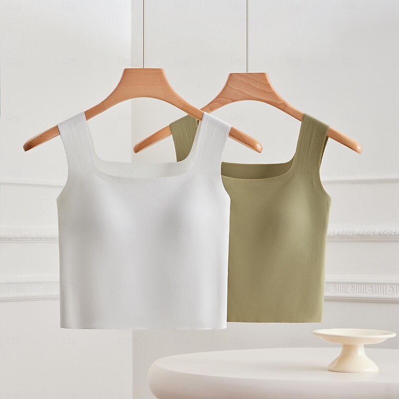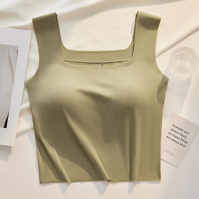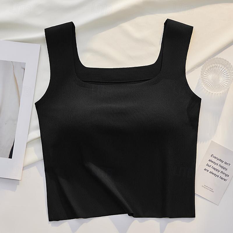 More information about Women's Camisole Tank Top Basic Sleeveless Regular Tops Square Neck Black White Blue Green Beige Summer