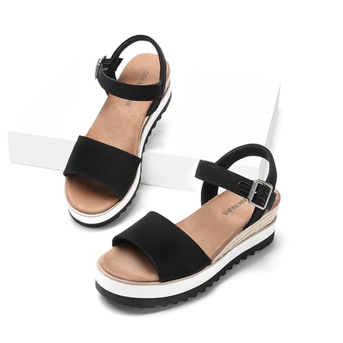 DREAM PAIRS Women's Open Toe Buckle Ankle Strap Espadrille Platform Wedge Sandals 1