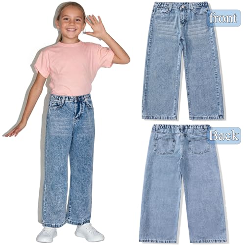 • ---COMFORTABLE & TRENDY CUTE CLOTHES FOR TEEN GIRLS 8-12Y: Designed for ages 8-12 with an adjustable stretch waistband, Non-stretch denim maintains shape while allowing easy pull-up wear, durable to withstand daily wear and tear. Flattering bootcut silhouette with ripped accents. Light blue washed denim offers a vintage-inspired look that pairs well with any top.