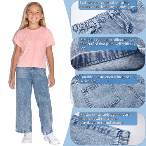 Girls Straight Leg Bootcut Ripped Baggy Jeans for 8-12 Y Old - Adjustable Stretch Waist Pull Up 5 Pockets Washed Denim Pants 5