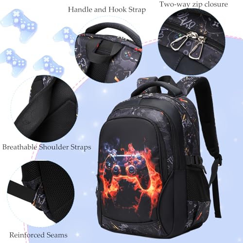 Boys Backpack for Elementary Game School Backpacks Waterproof Kids Bookbag with Lunch Box Luminous Game Print(Red Flame Game) 1