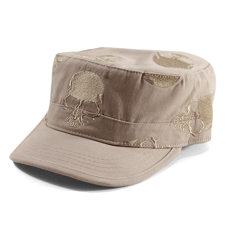 Men Cotton Military Caps Cadet Hat Unique Skull Design Vintage Flat Top Army Cap 4