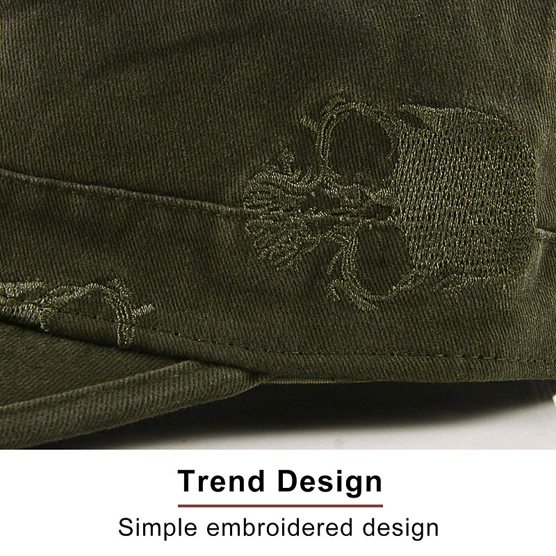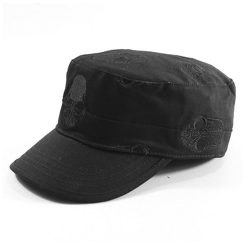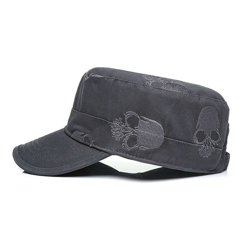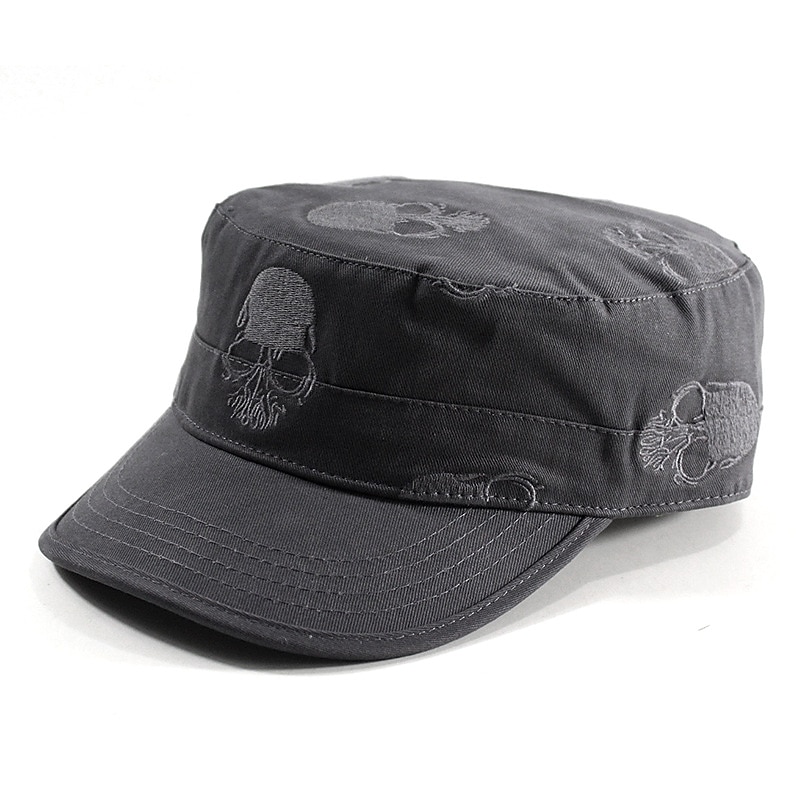 Men Cotton Military Caps Cadet Hat Unique Skull Design Vintage Flat Top Army Cap 10