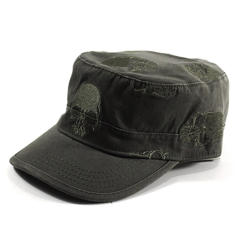HOT ! Men Cotton Military Caps Cadet Hat Unique Skull Design Vintage Flat Top Army Cap