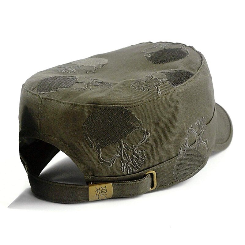 Men Cotton Military Caps Cadet Hat Unique Skull Design Vintage Flat Top Army Cap 6
