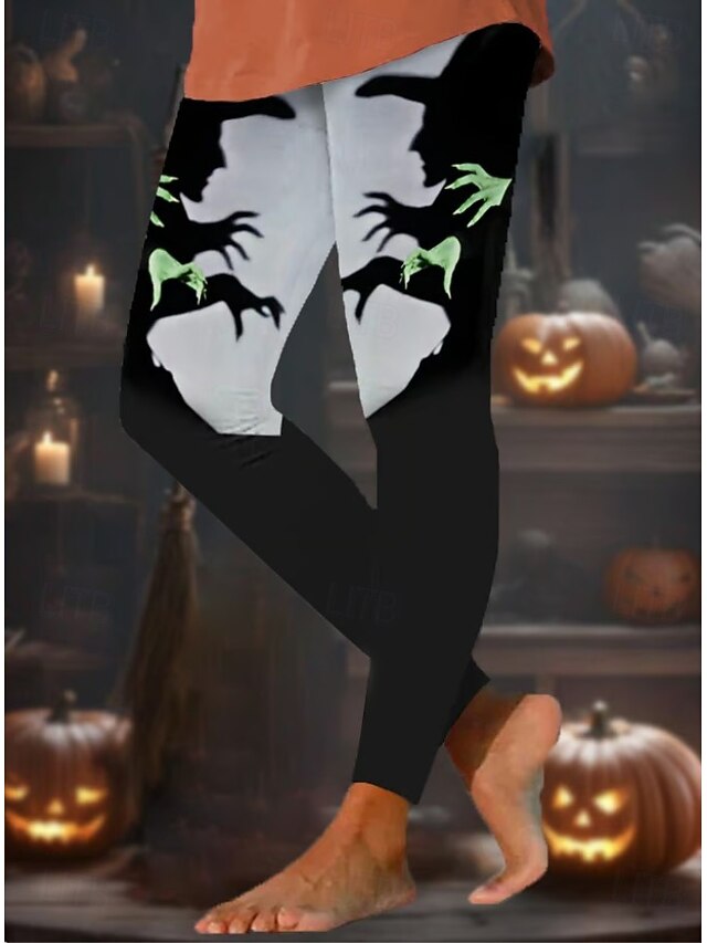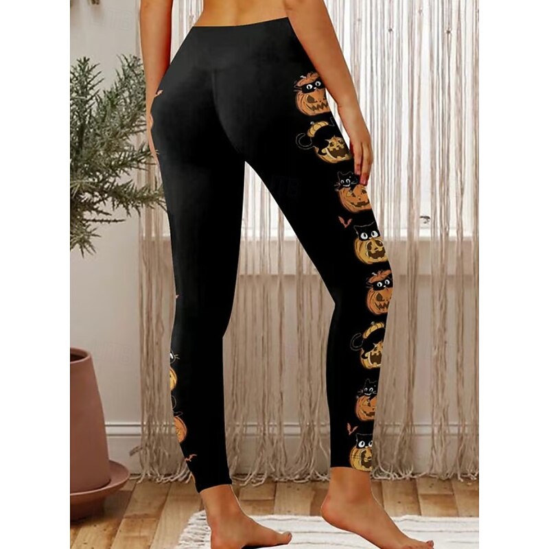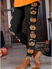 More information about Women's Leggings Vacation Vintage Fashion Ankle-Length High WaistPantsHalloween Graphic Pumpkin Printing Soft Breathable Stretchy Outdoor Daily Dark Grey Black Orange Spring Fall Winter Slim Fit