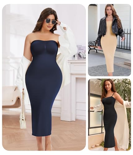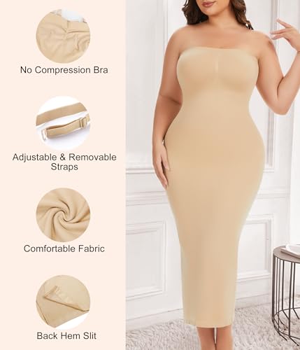 Strapless Shapewear Slip for Women Under Dresses Tummy Control Dress Slips Plus Size Seamless Full Body Shaper 4