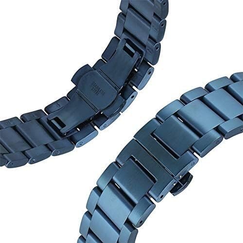Butterfly Buckle 18/20/22/24mm Blue Solid Stainless Steel Watch Strap Push Button Hidden Buckle Straps Watch Strap (22mm) 3