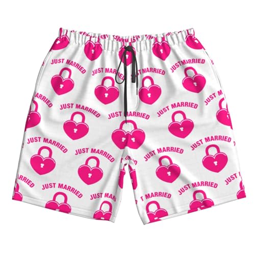 just Married Print Men's Beach Shorts Hawaiian Swim Trunks Quick Dry Summer Sports Bathing Suits 1