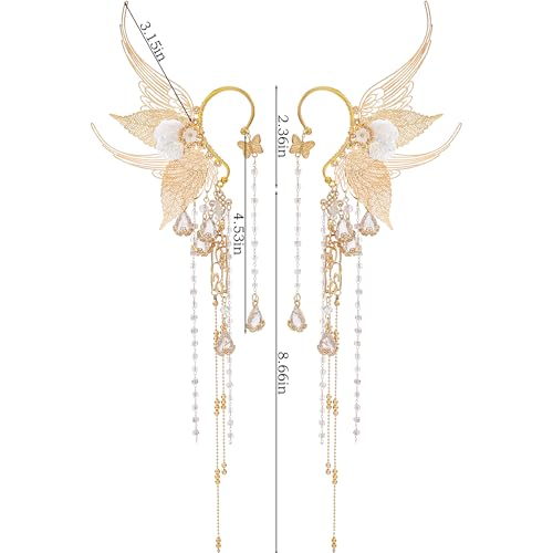 HOT ! FRESHME Butterfly Elf Ear Cuffs - Fairy Ear Cuffs with Tassel Ear Wrap Earrings Non Piercing Renaissance for Women Adult