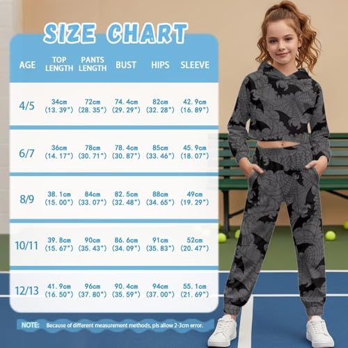 • [Accurate Size Options] - Girls crop long sleeve sports hoodies 2 piece outfits are available in five sizes (4-5 Years, 6-7 Years, 8-9 Years, 10-11 Years, 12-13 Years), each designed to fit kids’ proportions accurately. For the best fit, please refer to the size chart in the product details and measure height and weight before ordering