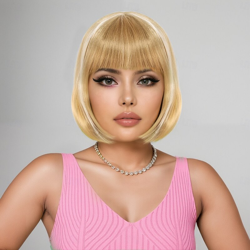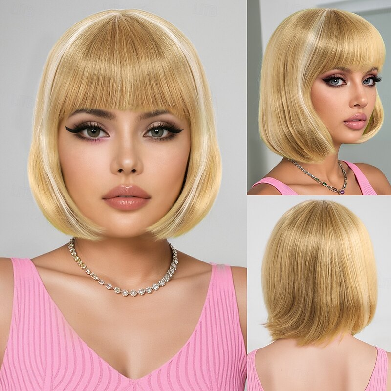 $19.49 - Synthetic Wig Straight kinky Straight Asymmetrical Neat Bang Machine Made Wig 12 inch A1 Synthetic Hair Women's Classic Comfortable Highlighted / Balayage Hair Blonde 2025. Shop for cheap Synthetic Trendy Wigs online? Buy at lightinthebox.com on sale today!