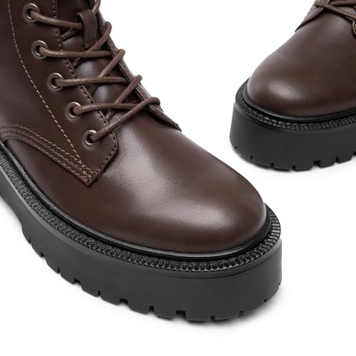 DREAM PAIRS Women's Lace up Combat Ankle Boots Fashion Lug Sole Platform Booties Shoes 6