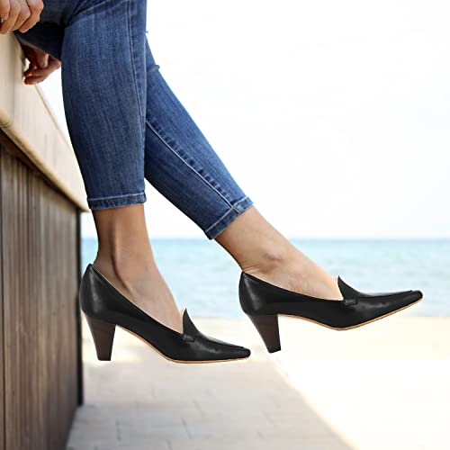 • ☆★☆2 Inch Chunky Block Heels for Comfort: Women's Black Slip On Office Work Pumps Dressy Elegant adopt 2 inch/5 cm chunky heels which are in moderate height to meet your daily needs and can be Stable enough for your all-day Standing & Walking Comfort. Brown chunky heels pumps shoes pointy toe use padded insole and anti-slip rubber sole to give you enough sole support, making your every step Soft, Stable, Comfortable & Confident.