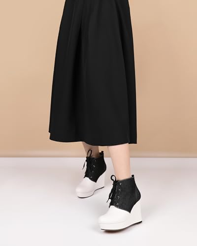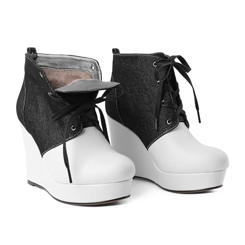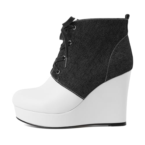 Joseywade Wedge Heels Ankle Boots for Women Platform Boots Round Toe Short Booties Lace-up 4 Inch 6