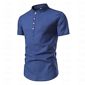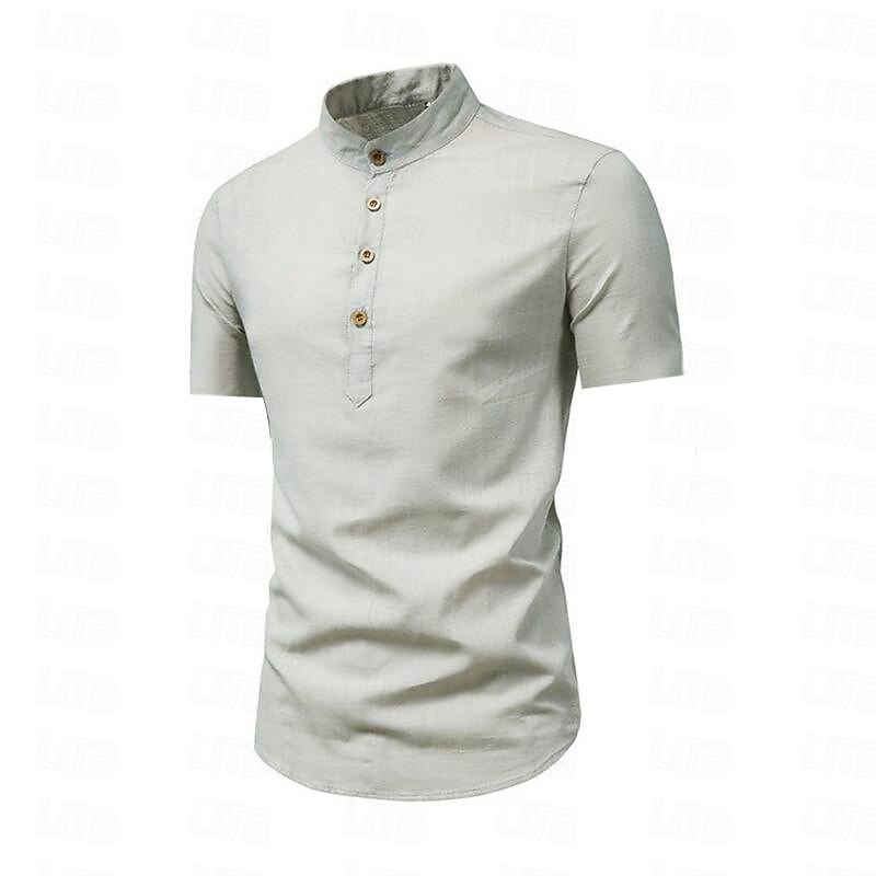 More information about Men's Shirt Linen Shirt Cotton Linen Shirt Chinese Collar Shirt Mandarin Collar Shirt Summer Shirt Plain Vacation Street Black White Red Brown Short Sleeve Standing Collar Summer Clothing Apparel