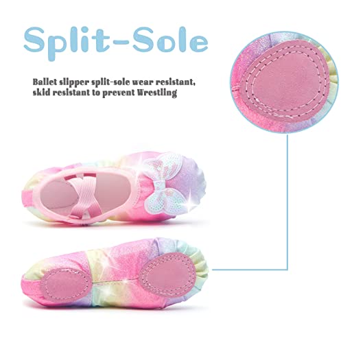 Girls Ballet Shoes Glitter Split-Sole Dance Slippers Toddler Kid Practice Shoes Flats Soft Lightweight with Elastic Laces for Performance Gymnastics Yoga 5