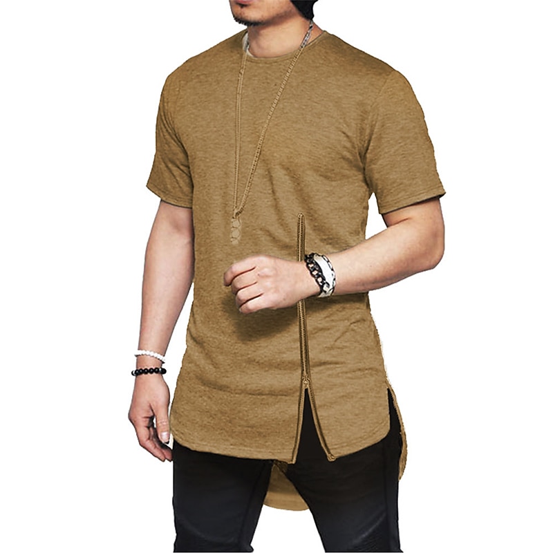 More information about Men's T Shirt Short Sleeve Crew Neck Summer Plain Fashion Lightweight Muscle Zipper Asymmetric Vacation Casual Holiday Black White Top Tee for Men