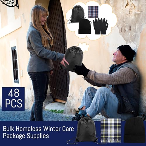 • Colorful and Practical: the items in this homeless winter kit have various colors, will add more bright colors to the lives of the homeless; Apart from that, you also can share these bulk gloves, beanies hats, scarves and drawstring bags in events, charities, donating and more