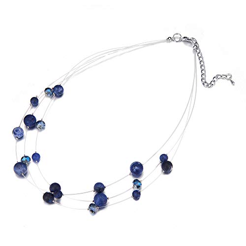 HOT ! PEARL&CLUB Crystal Layered Statement Necklace For Women - Choker Necklace with Chunky Silver Chain, Birthday Gifts For Women