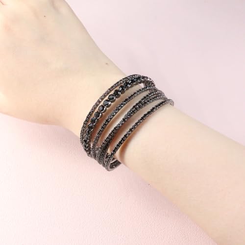 Black Rhinestone Cuff Bracelets for Women Halloween Decor Dainty MultiLayer Stackable Bracelets 1920s Vintage Crystal Stretch Bracelet 5