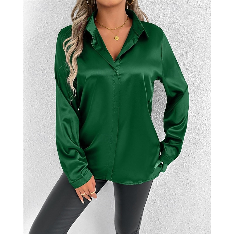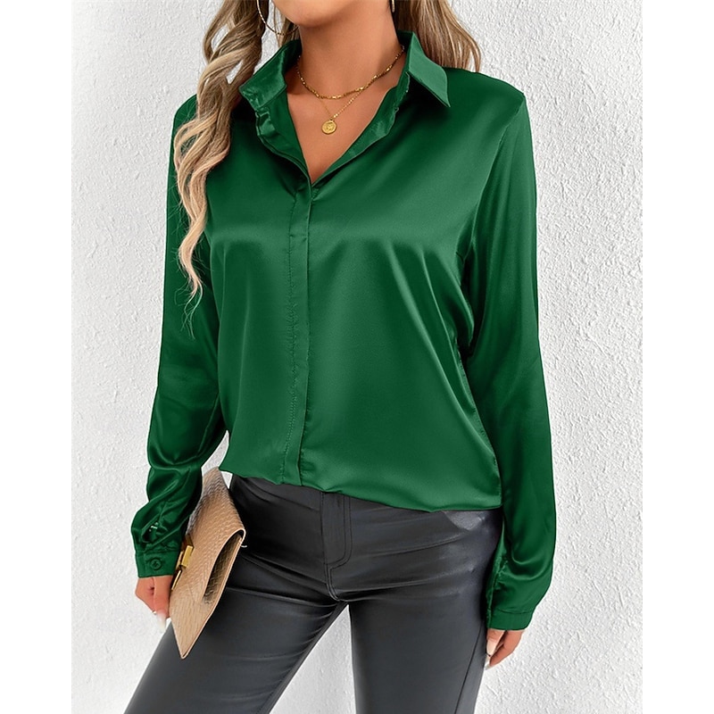 More information about Women's Shirt Elegant Dressy Satin Solid Color Stylish Casual Long Sleeve Shirt Collar Regular Tops Daily Going out Buttons Pink Purple Green Spring Fall