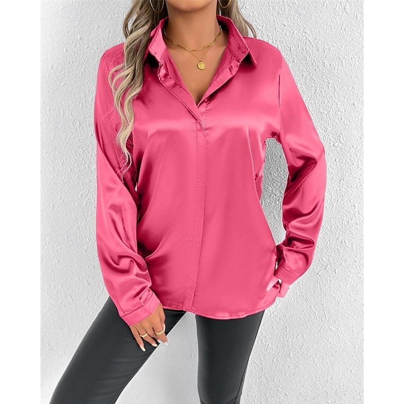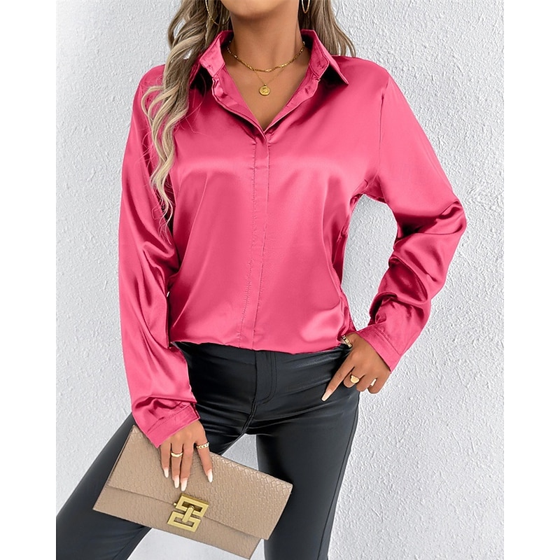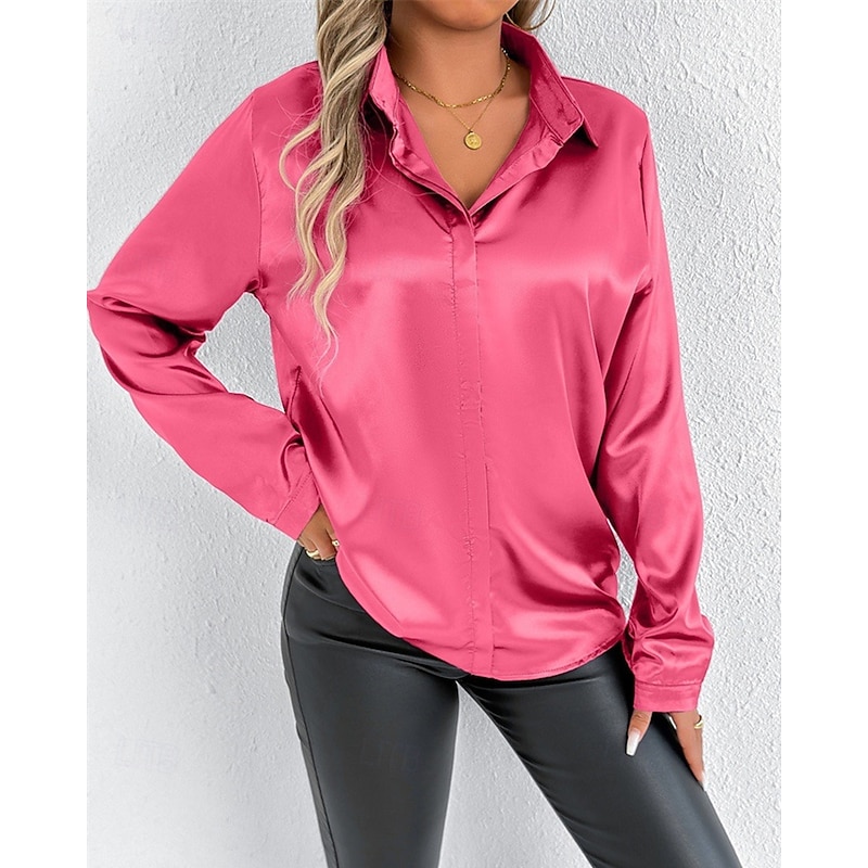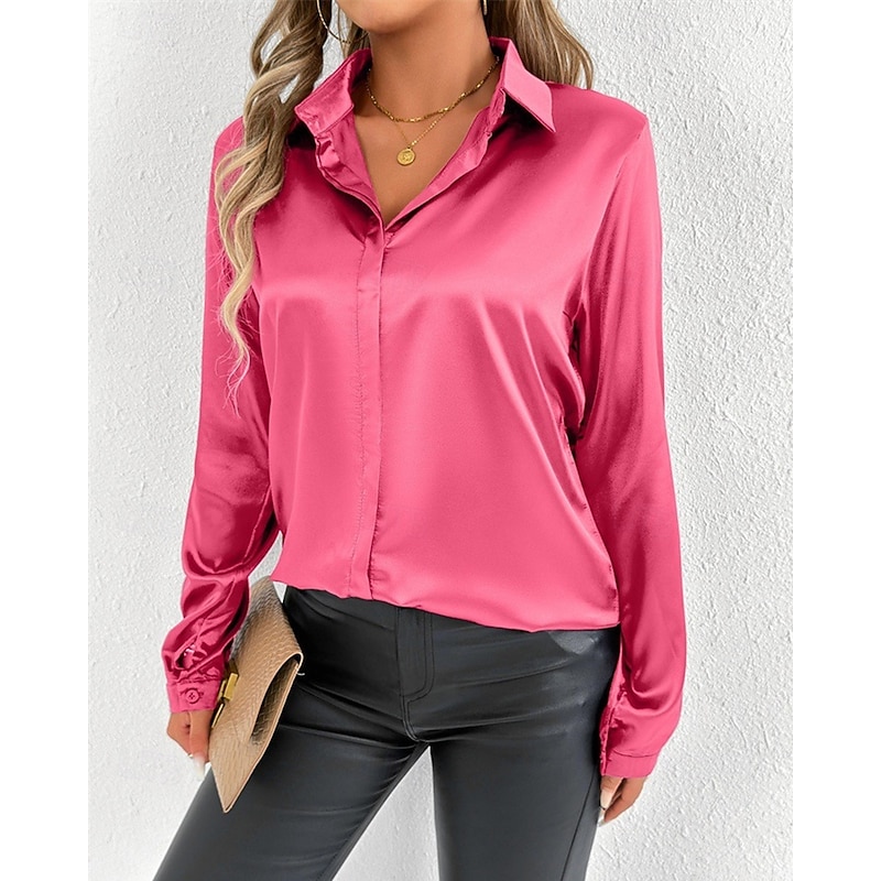 Women's Shirt Elegant Dressy Satin Solid Color Stylish Casual Long Sleeve Shirt Collar Regular Tops Daily Going out Buttons Pink Purple Green Spring Fall 13