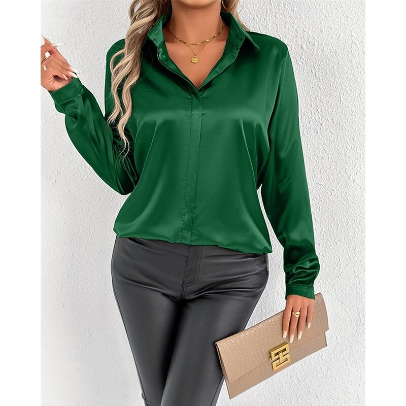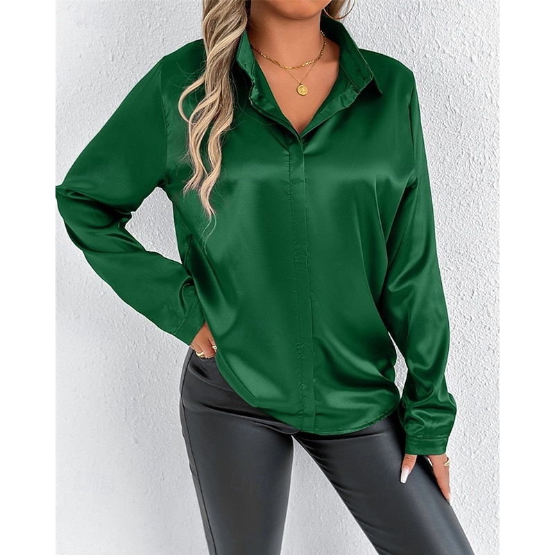 HOT ! Women's Shirt Elegant Dressy Satin Solid Color Stylish Casual Long Sleeve Shirt Collar Regular Tops Daily Going out Buttons Pink Purple Green Spring Fall