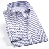 More information about Men's Shirt Dress Shirt Oxford Shirt Plaid Wedding Office & Career Light Pink Light Blue Black White Short Sleeve Turndown Spring & Fall Clothing Apparel Print