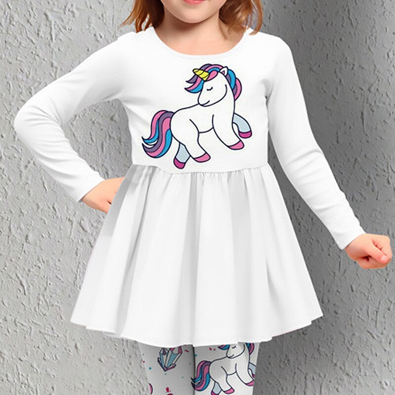 More information about Girls' 3D Unicorn T-shirt & Legging Ruffle Dress Set Long Sleeve 3D Print Fall Winter Active Fashion Daily Kids 3-12 Years Outdoor Vacation Date Regular Fit
