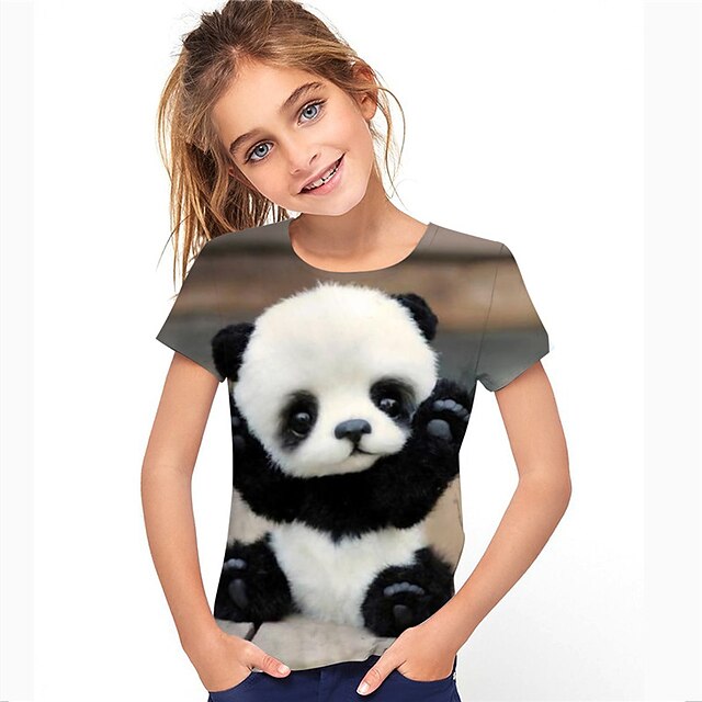HOT ! Kids Girls' T shirt Animal Outdoor 3D Print Short Sleeve Active 3-12 Years Spring Black
