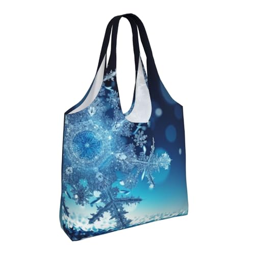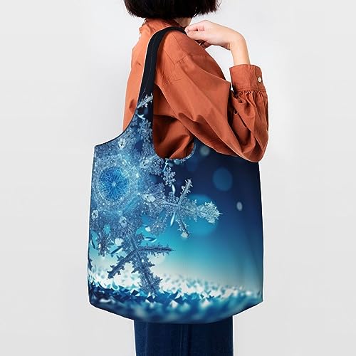 HOT ! Canvas Tote Bag for Women Shoulder Tote Purse Reusable Grocery Bag Blue christmas snowflake Aesthetic Shopping Bags