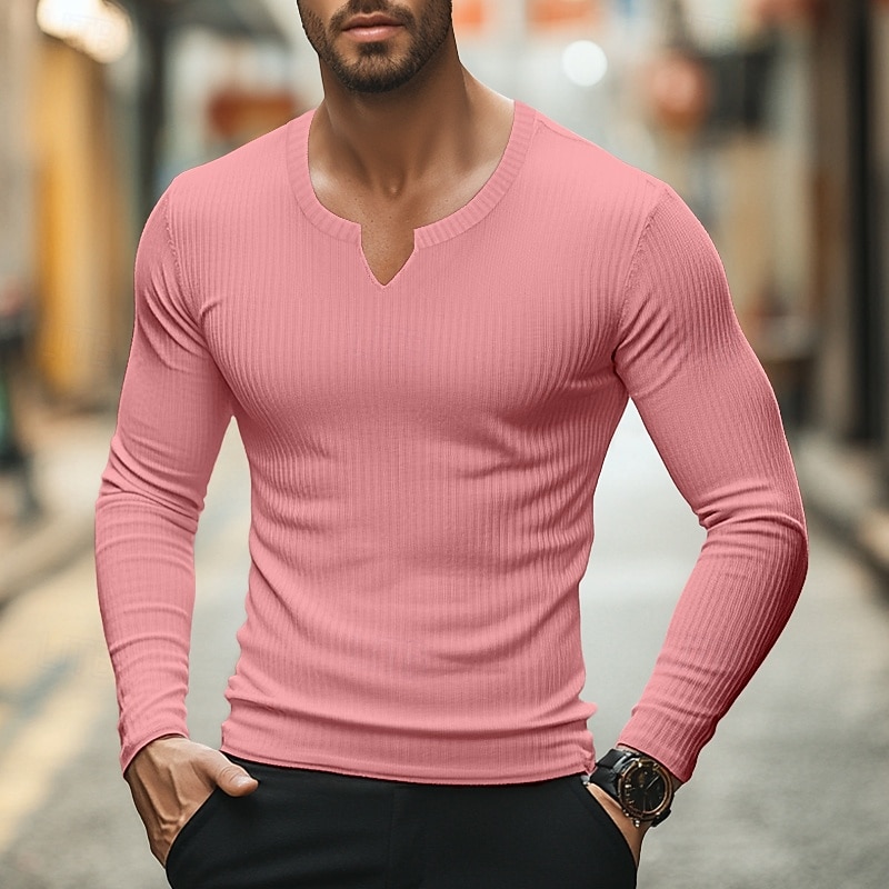 More information about Men's T Shirt Muscle Shirt Ribbed Knit tee Tee Top Long Sleeve V Neck Summer Spring & Fall Plain Pit Strip Fashion Designer Basic Ribbed Vacation Street Going out Light Blue Black Pink Top Tee for