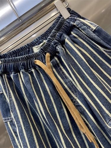 LIXINGHEITANG Large Size Vertical Striped Workwear Denim dad Pants Mens Summer Elastic Waist Hiphop 6