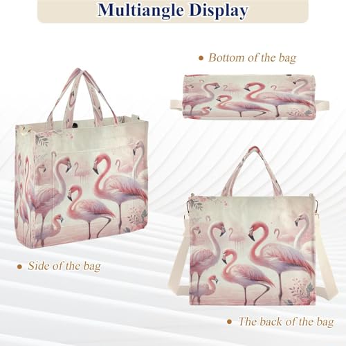 Emelivor Flamingos Flowers Tote Bag for Women Shoulder Teacher Crossbody Beach Bag for Office Travel College Holiday S 2