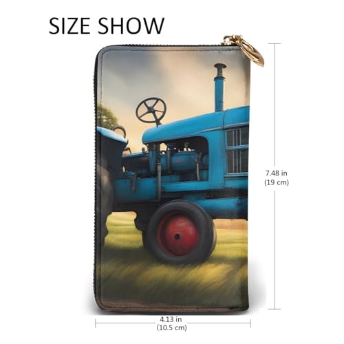 HOT ! Fantasy Farm Tractor Picture Leather Long Clutch Wallet for Fashionable Girls and Women - Durable, Stylish, and Functional, Black, One Size