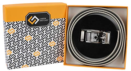 Women's Leather Ratchet Belt, Trim to Fit 18"- 44" Waist, No Holes, Packed in a Gift Box (W723X Light Gray, 25mm Wide) 5
