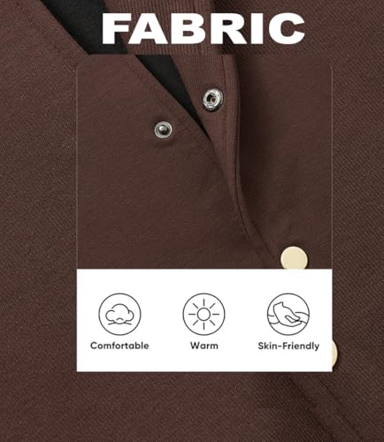 • 【FEATURES】:Contrast long sleeves,Ribbed stand collar & cuffs, Two front pockets. Classic design of letterman jacket, button down closure