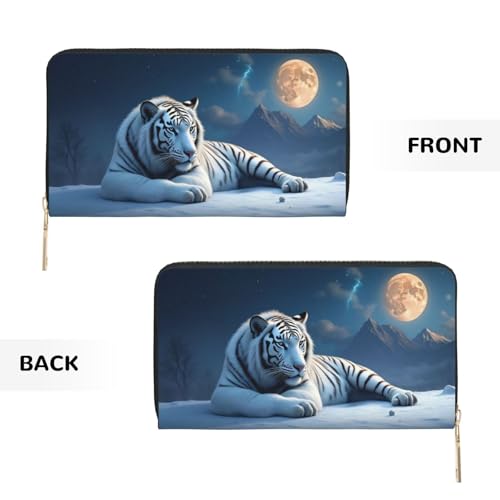 HOT ! Wallet Women - Elegant White Tiger-A Print Leather Wallet for Women with Zipper, Cute Bifold Long Ladies Wallets